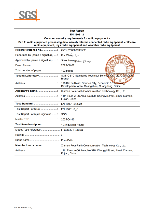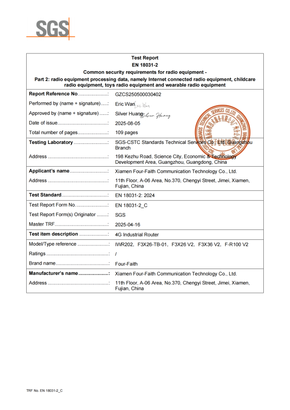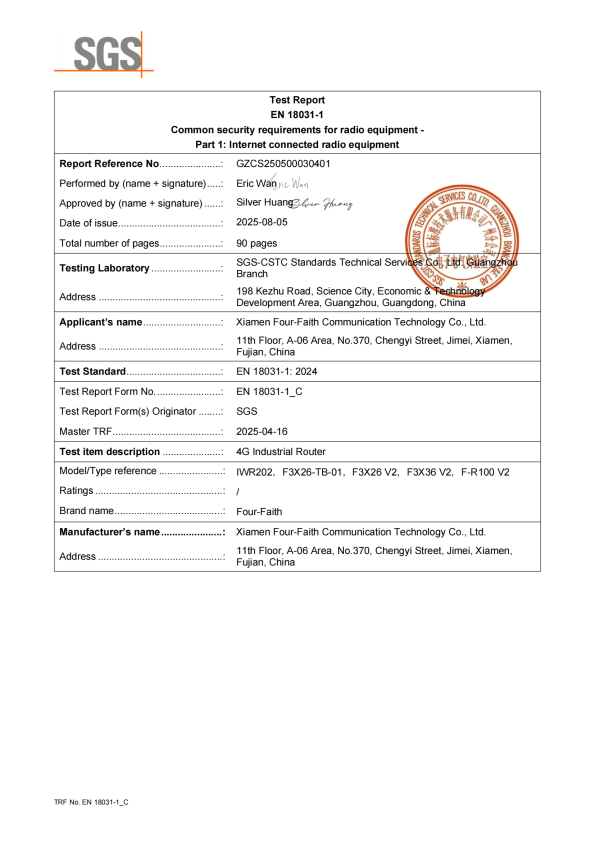 四信時(shí)刻洞察行業(yè)市場(chǎng)新需求,率先完成布局,旗下系列工業(yè)路由器產(chǎn)品通過國(guó)際權(quán)威認(rèn)證機(jī)構(gòu)審核,完全符合EN 18031-1 和 EN 18031-2 兩大關(guān)鍵協(xié)調(diào)標(biāo)準(zhǔn)。