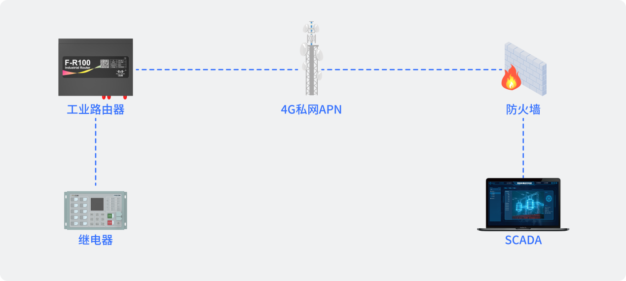 為滿足該公司對DNP3協(xié)議無縫對接、4G私有網(wǎng)絡(luò)安全傳輸及工業(yè)級設(shè)備可靠性的核心需求,四信提供以F-R100 V2工業(yè)級4G路由器為核心的通信解決方案,實現(xiàn)遠程控制的高效落地。